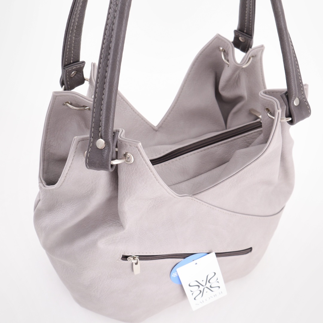 Бесплатные звонкиСумка приятной формы из экокожи. Спереди декоративная молния. Ручки на кольцах (высота ручек 22 см от колец, 31 см от верхнего замка), возможно носить через плечо. Сверху одно отделение на молнии. Внутри карман-перегородка на молнии + карман на молнии. Сзади карман на молнии для мелочи. Материал выдерживает температуру до -50С.