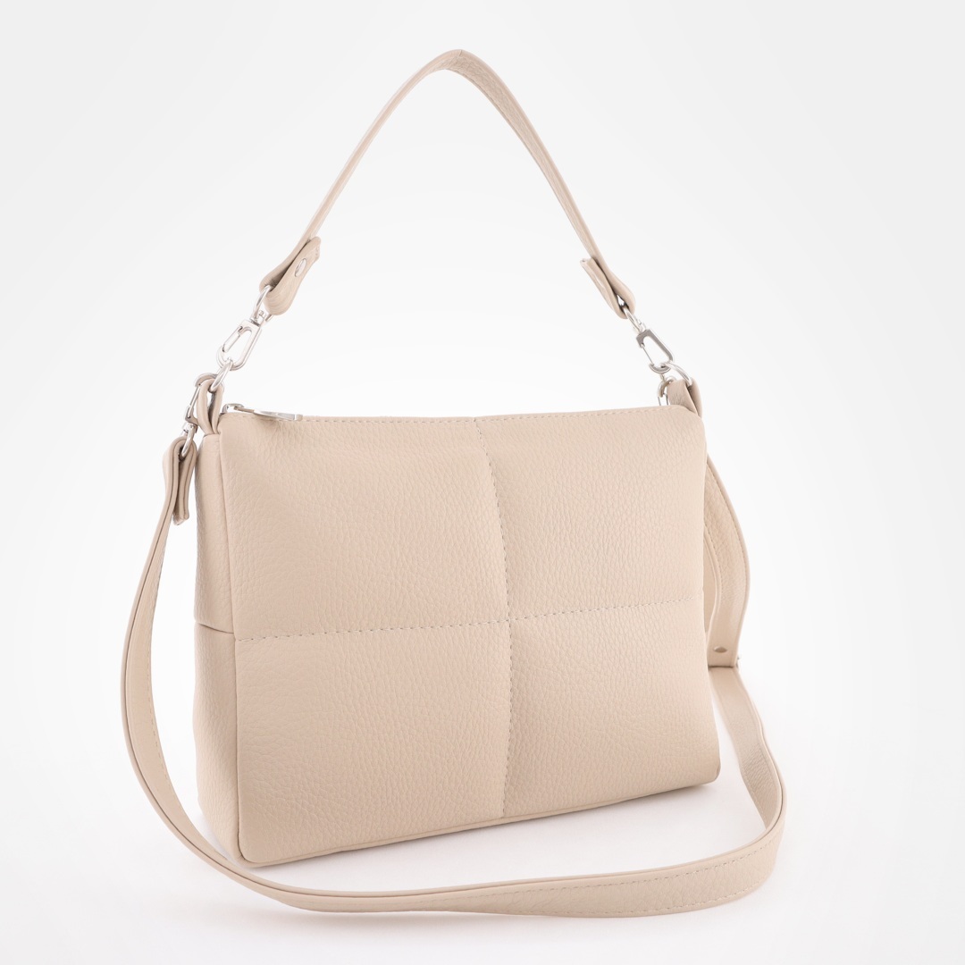 Бесплатные звонкиНебольшая сумочка на длинном ремне, есть также короткая ручка. Геометрическая простежка. Сверху отделение на молнии. Внутри карман для телефона и карман на молнии. Сзади карман на молнии.
