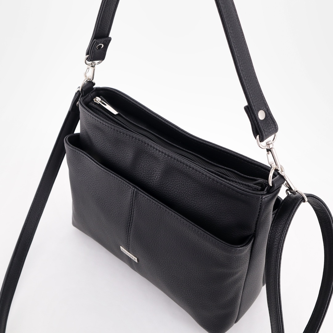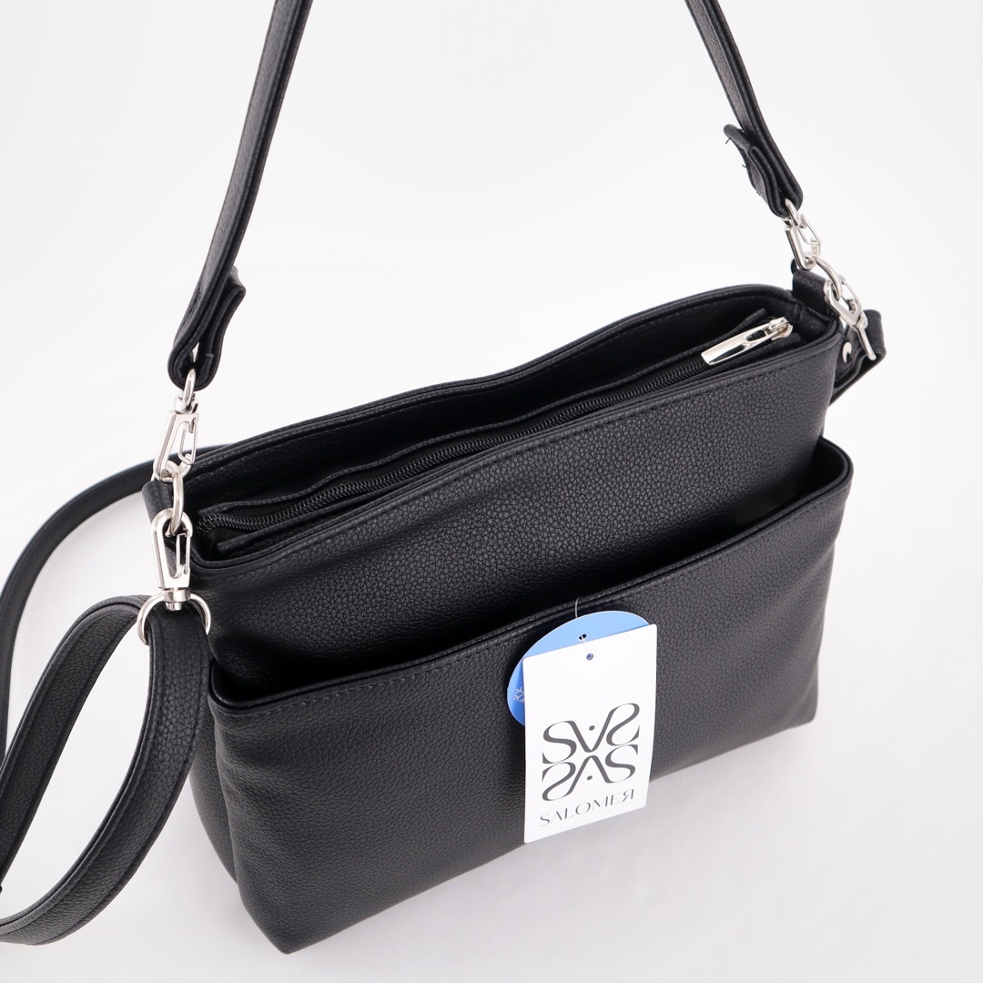 Бесплатные звонкиНебольшая практичная сумка на длинном ремне. Спереди карман на молнии. Сверху отделение на молнии. Внутри карман-перегородка + карман на молнии + карман для телефона. Сзади карман на молнии.