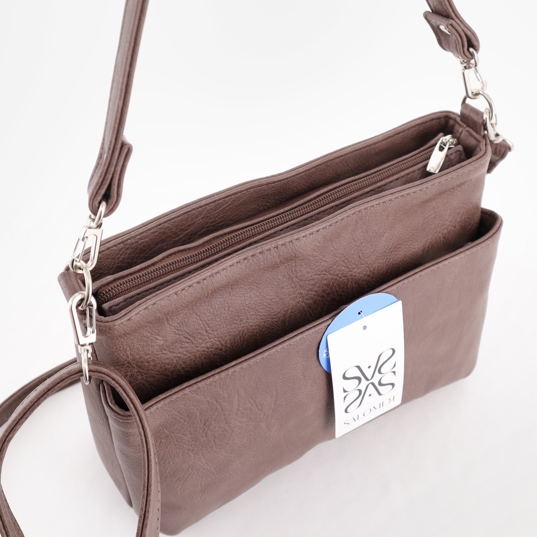 Бесплатные звонкиНебольшая практичная сумка на длинном ремне. Спереди карман на молнии. Сверху отделение на молнии. Внутри карман-перегородка + карман на молнии + карман для телефона. Сзади карман на молнии.