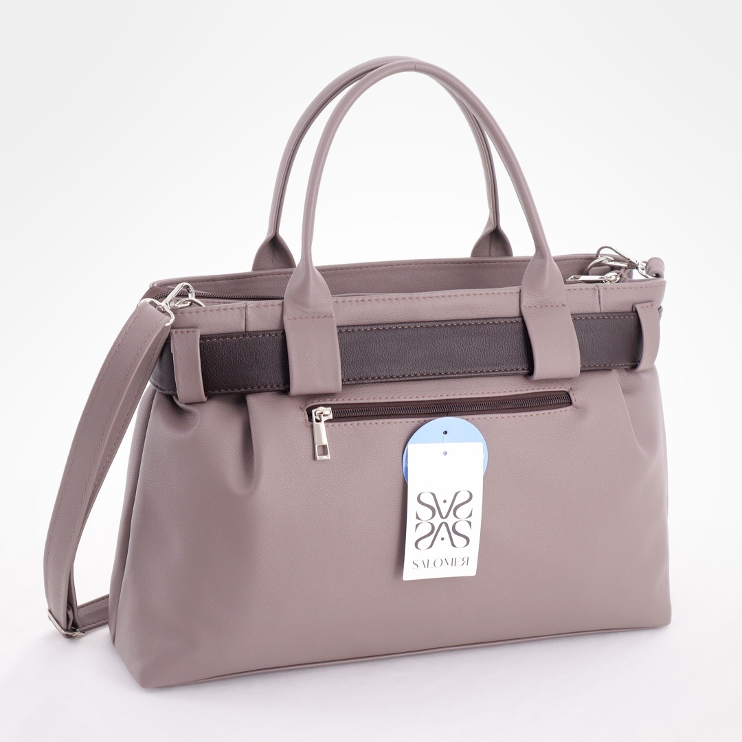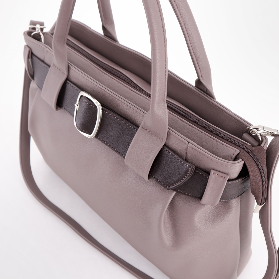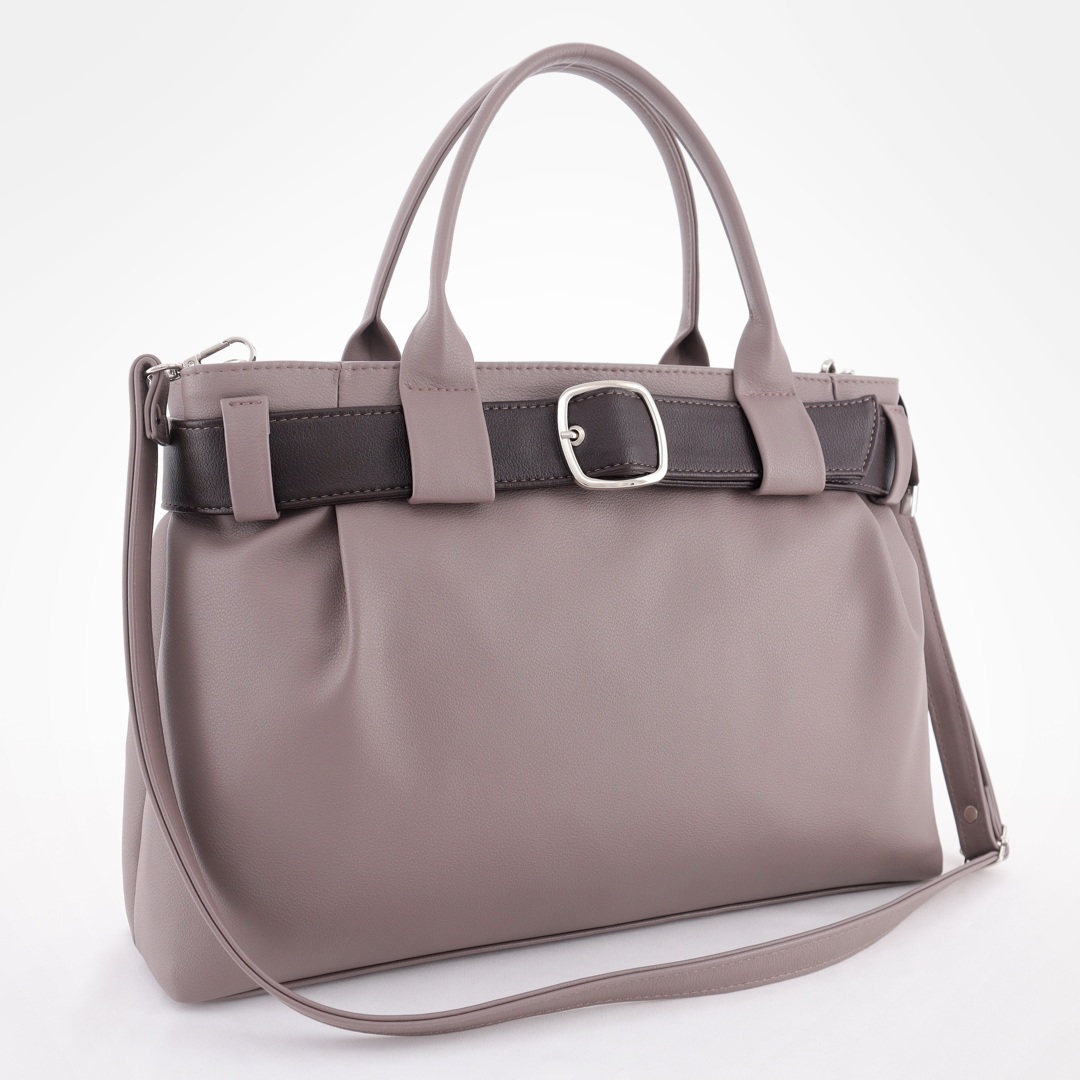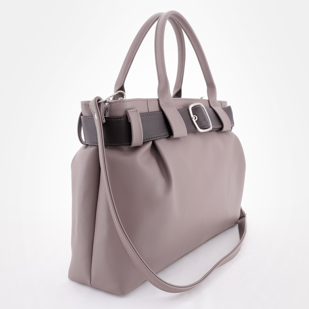 Бесплатные звонкиСумка-шоппер из мягкой экокожи с декоративным ремнем и пряжкой, подходит к деловому и повседневному образу. Модель с короткими ручками. Внутри одно функциональное отделение разделено карманом-перегородкой на два, карман на молнии и карман для телефона. В комплекте длинный ремень. Сзади сумки карман на молнии для мелочей. Снизу упор-ножки.