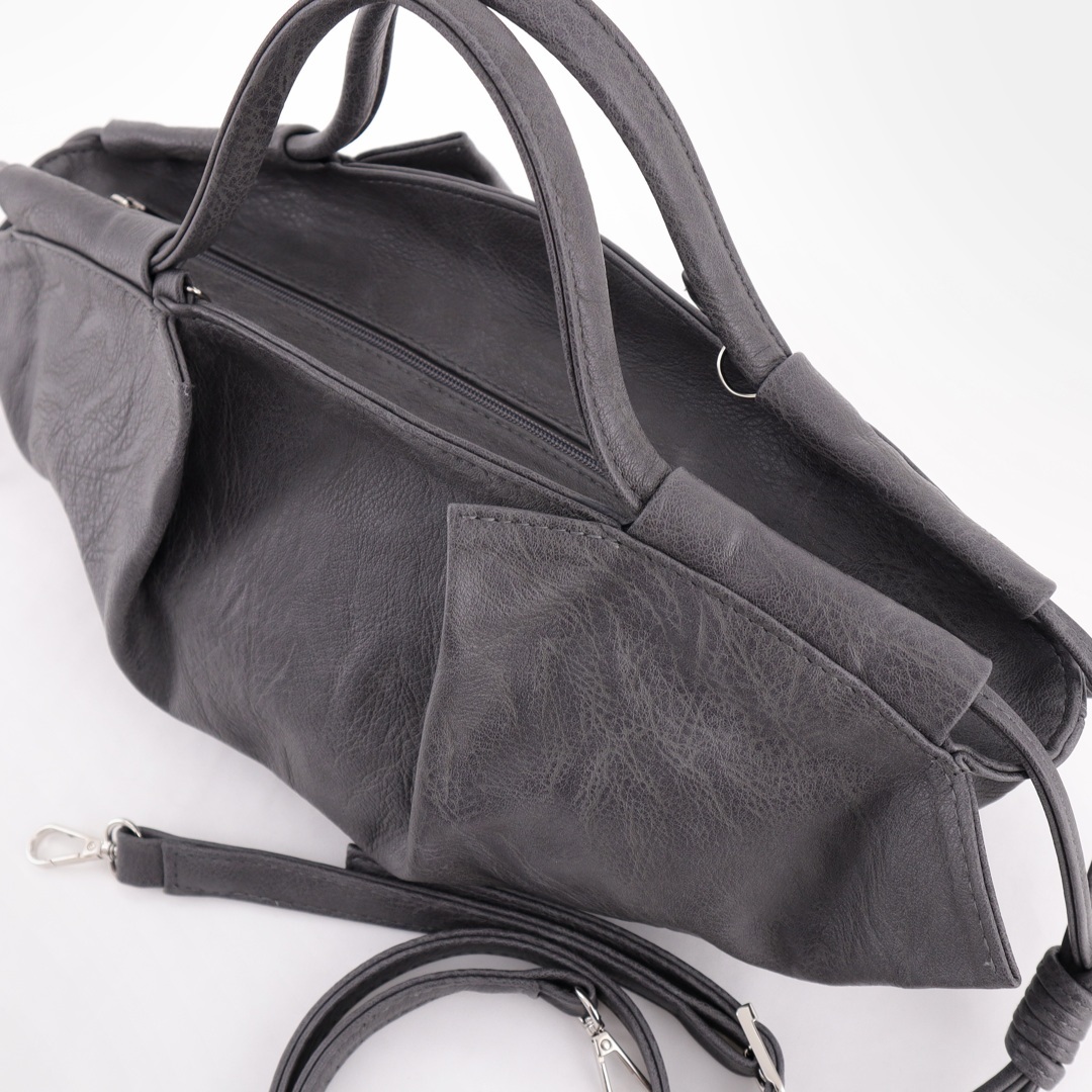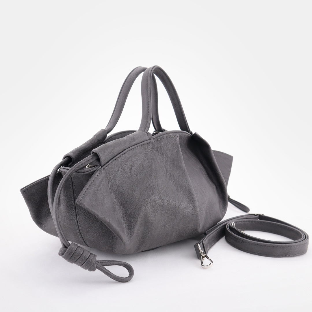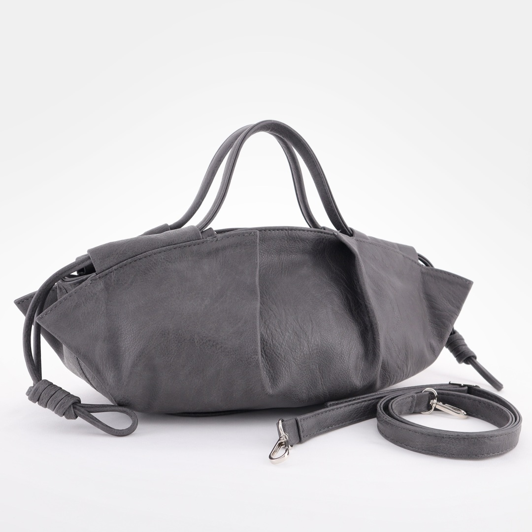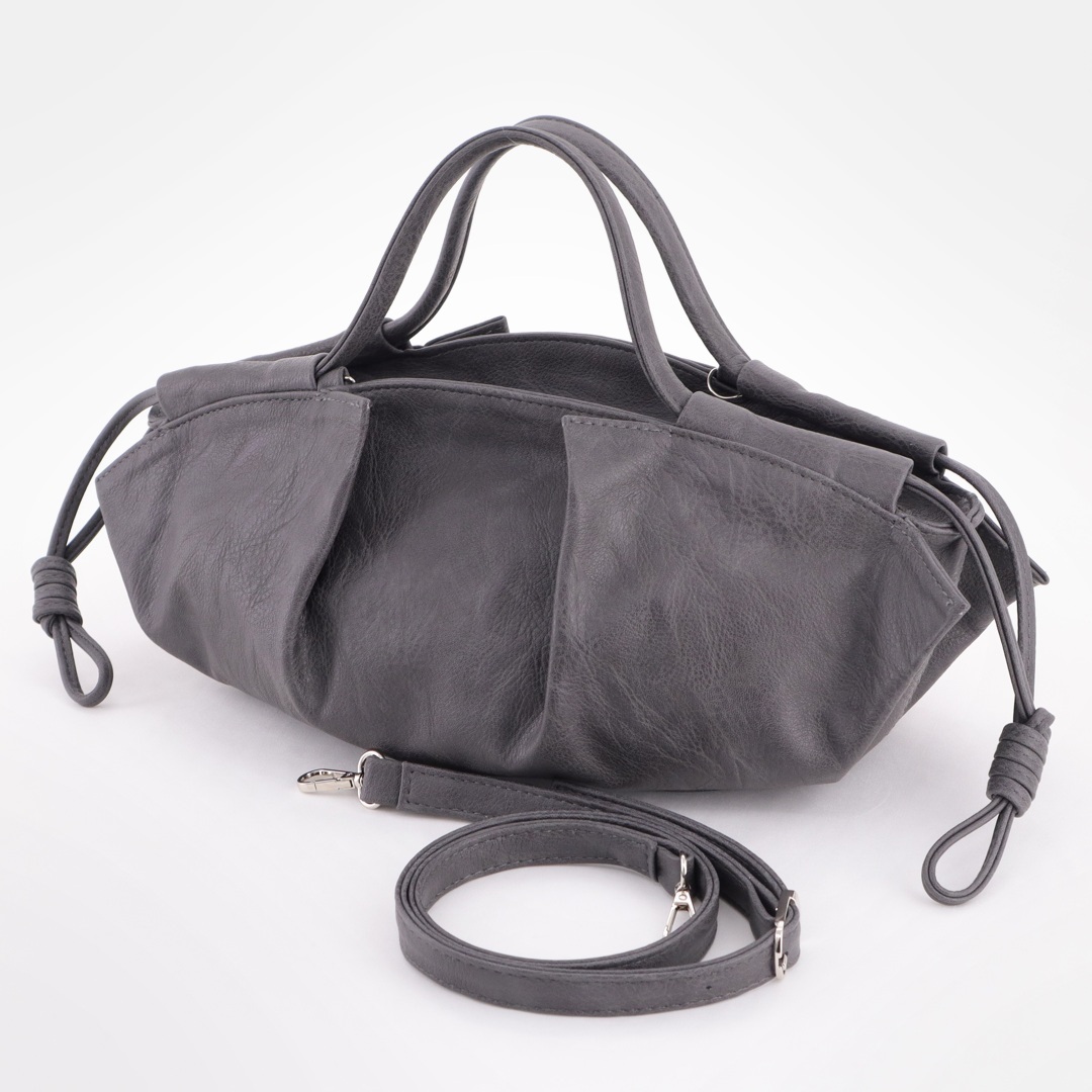 Сумка трендовой формы с декоративными складками и шнурами. Стильные удобные ручки. Одно основное отделение на молнии. Внутри карман на молнии и открытый карман. В комплекте съёмный длинный ремень.