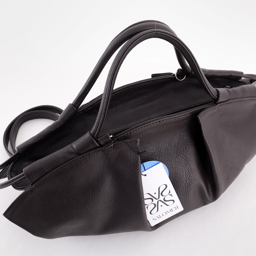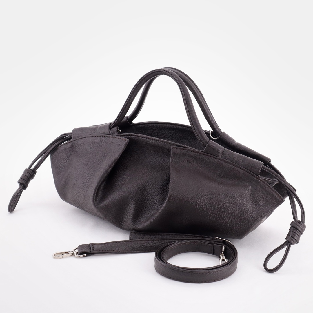 Бесплатные звонкиСумка трендовой формы с декоративными складками и шнурами. Стильные удобные ручки. Одно основное отделение на молнии. Внутри карман на молнии и открытый карман. В комплекте съёмный длинный ремень.