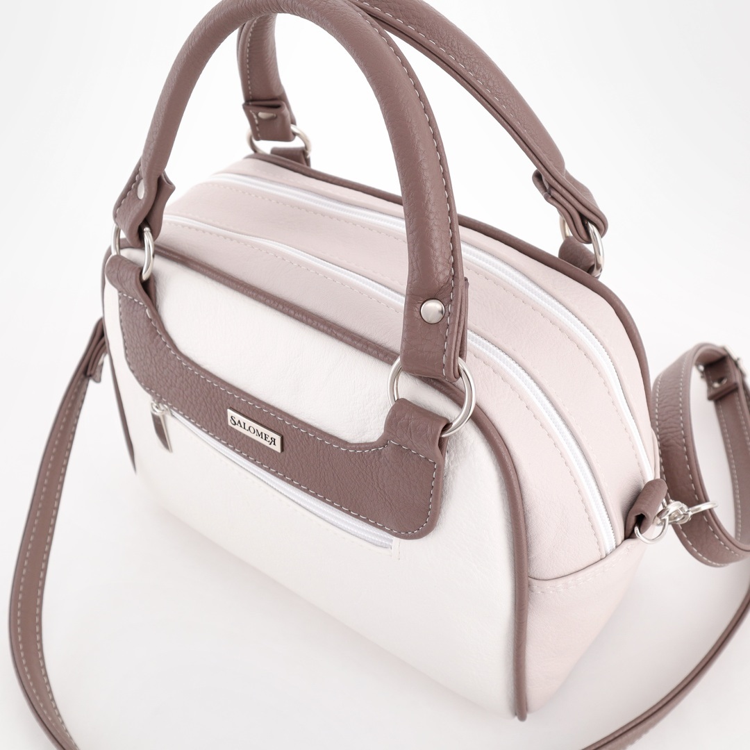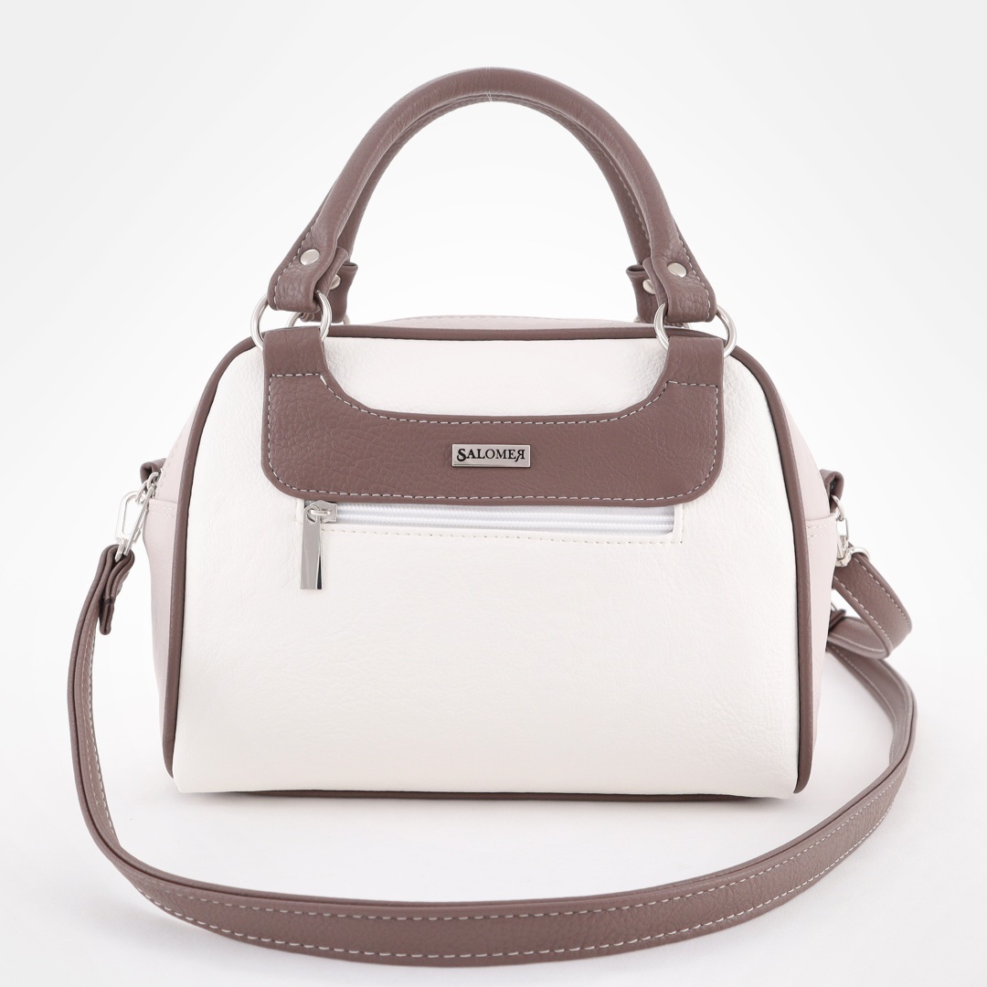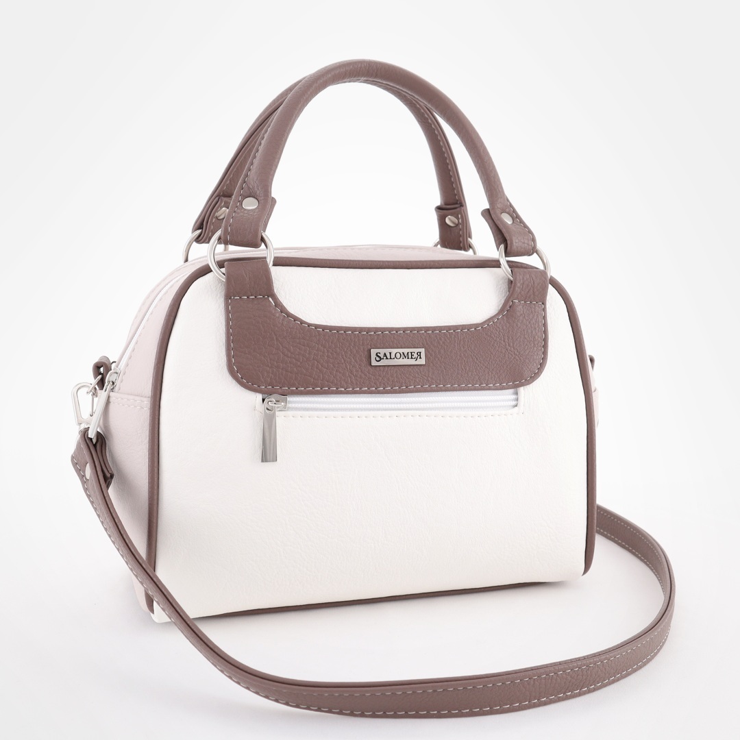 Бесплатные звонкиУдобная сумка из комбинированной кожи. Короткие ручки на кольцах (высота ручек 12 см). Спереди карман на молнии. Сверху 2 отделения на молниях. Внутри карман на молнии + карман для телефона. Сзади карман на молнии. Есть длинный ремень через плечо.