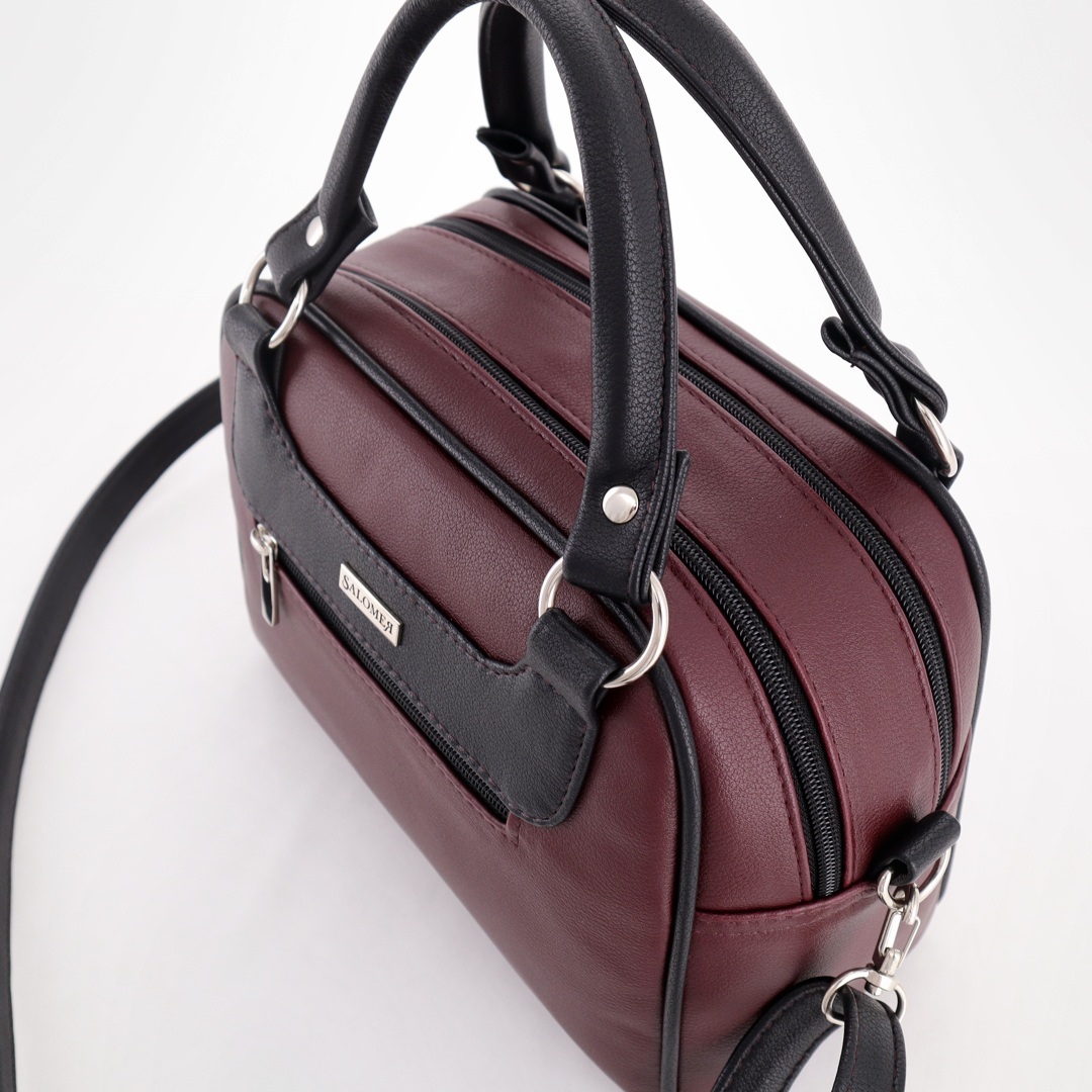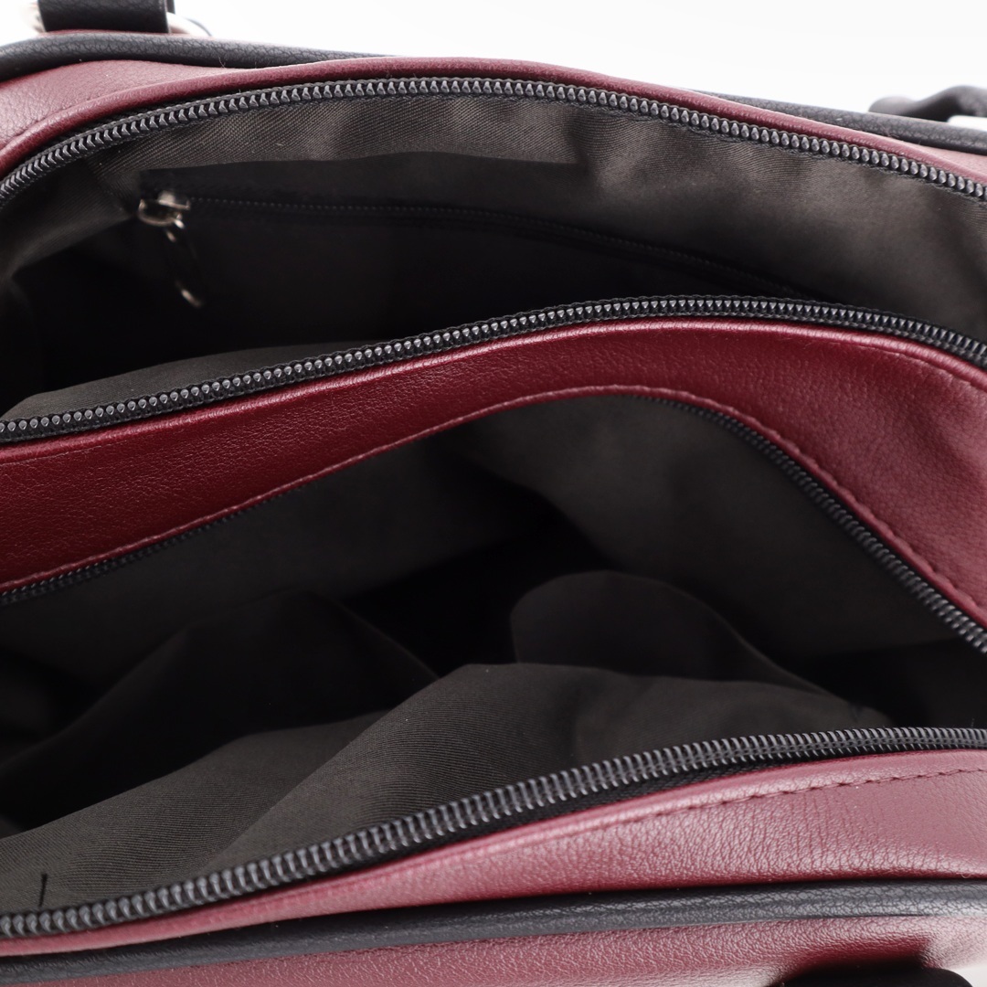 Бесплатные звонкиУдобная сумка из комбинированной кожи. Короткие ручки на кольцах (высота ручек 12 см). Спереди карман на молнии. Сверху 2 отделения на молниях. Внутри карман на молнии + карман для телефона. Сзади карман на молнии. Есть длинный ремень через плечо.