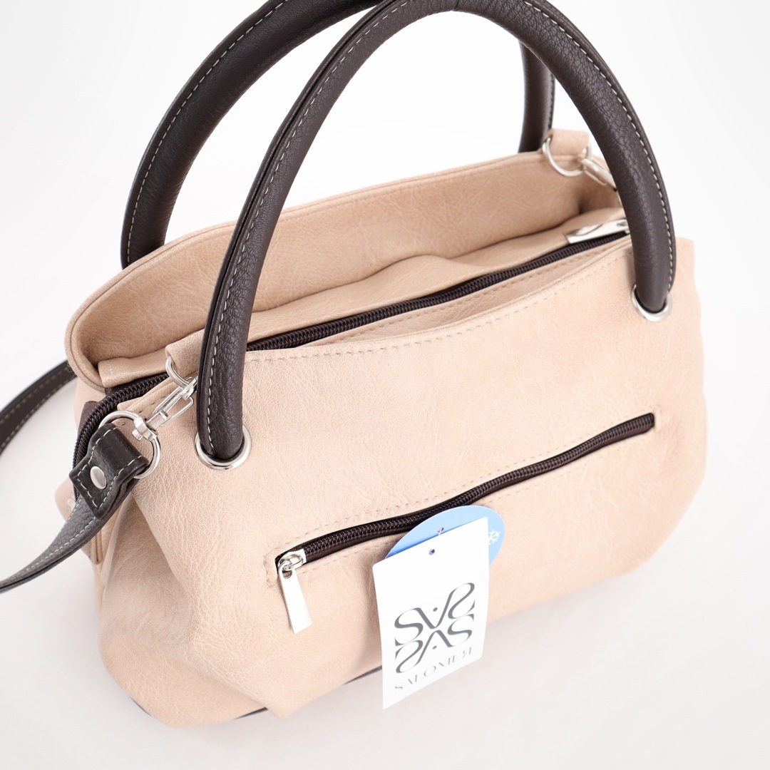 Бесплатные звонкиМаленькая сумочка мягкой формы. Высота ручек 15 см. Сверху одно отделение на молнии. Внутри отделение разделено перегородкой + карман на молнии. Есть длинный ремень через плечо.