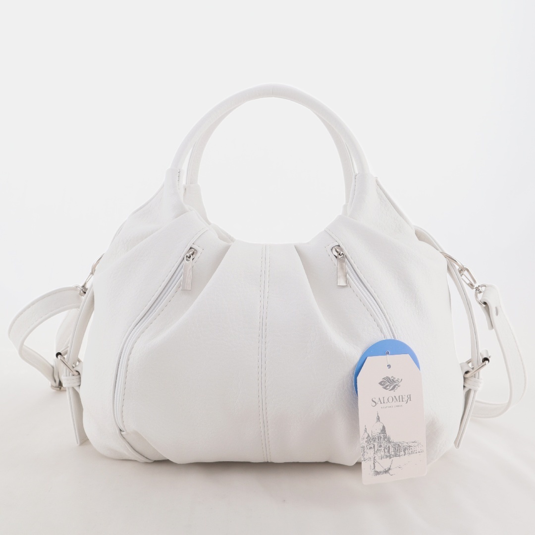 Бесплатные звонкиОригинальная сумка с круглыми ручками. Сверху отделение на молнии. Внутри карман-перегородка на молнии + карман на молнии + карман для телефона. Сзади 2 кармана на молниях. Есть длинный ремень.