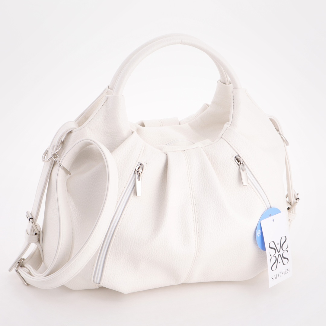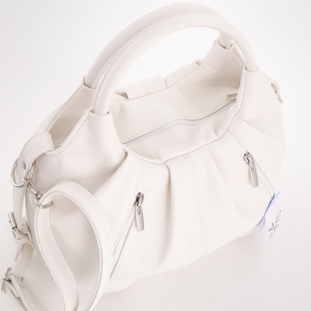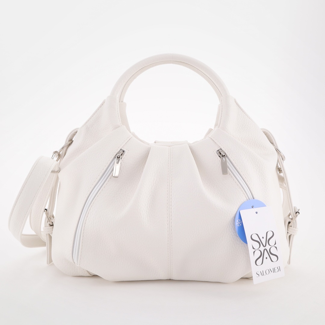 Бесплатные звонкиОригинальная сумка с круглыми ручками. Сверху отделение на молнии. Внутри карман-перегородка на молнии + карман на молнии + карман для телефона. Сзади 2 кармана на молниях. Есть длинный ремень.