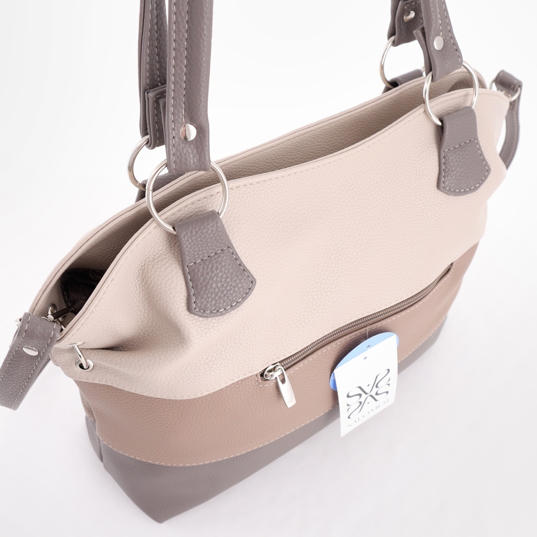 Бесплатные звонкиПрактичная вместительная сумка. Ручки на кольцах (высота ручек 27 см). Сверху одно отделение на молнии. Внутри карман-перегородка на молнии + карман на молнии + карман для телефона. Сзади карман на молнии.