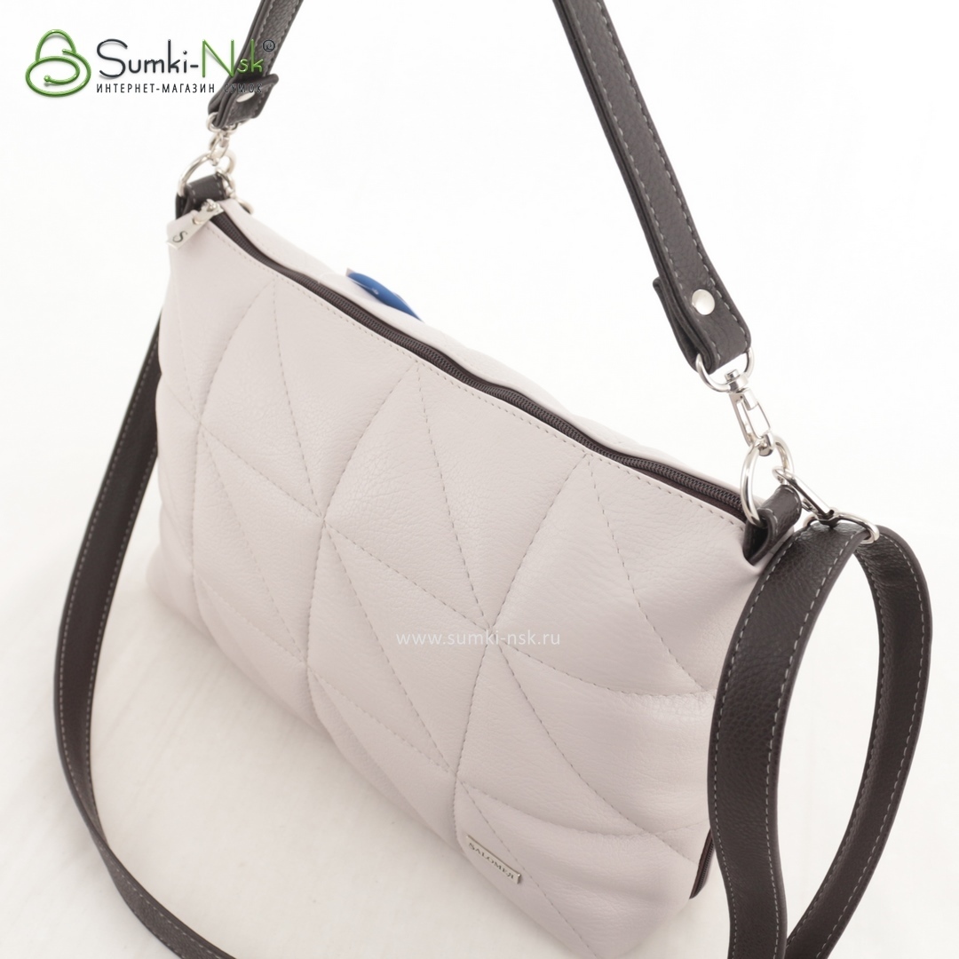 Бесплатные звонкиМягкая сумка из стеженого материала на длинном ремне. Сверху отделение на молнии. По бокам небольшие карманы. Внутри карман-перегородка на молнии + карман на молнии + карман для телефона.