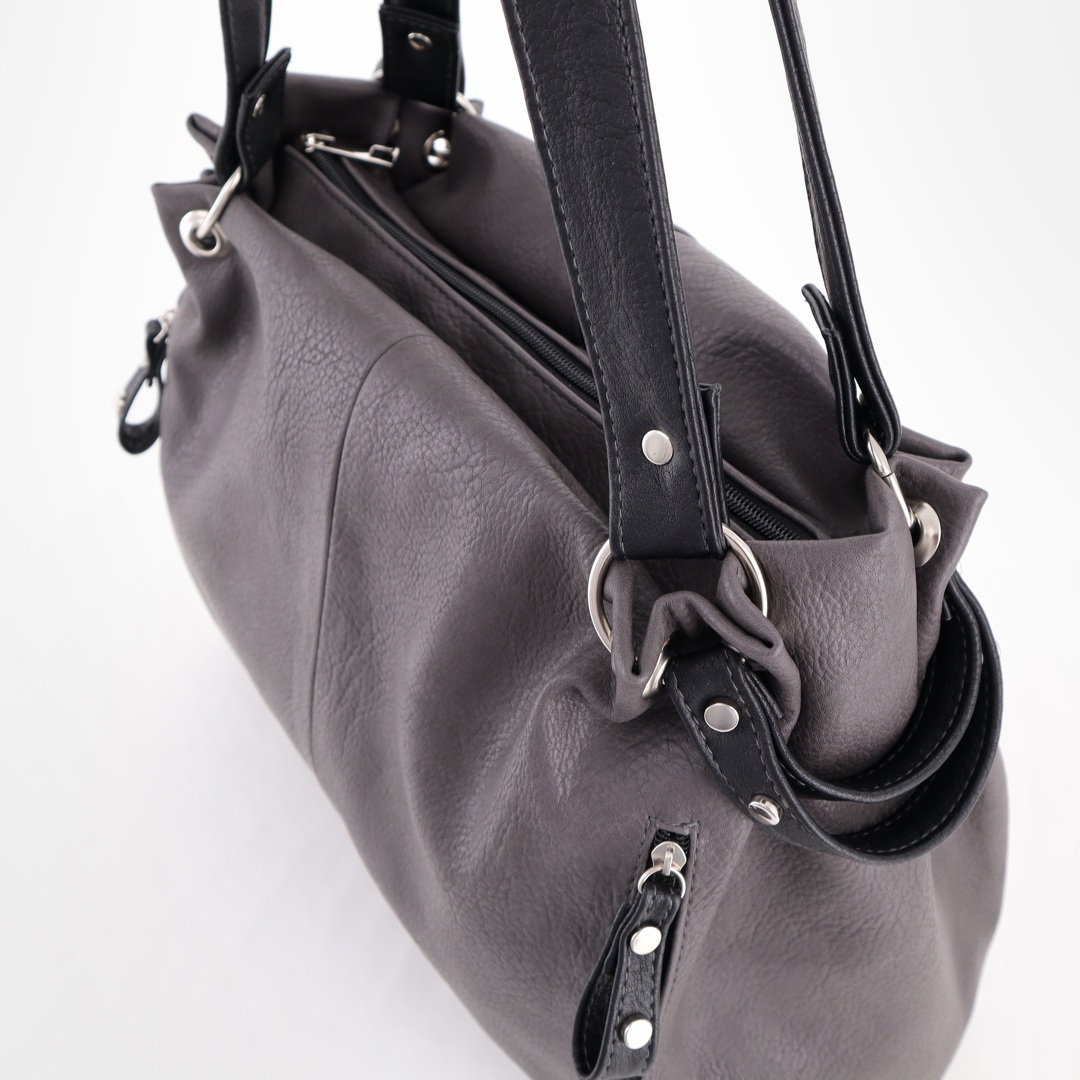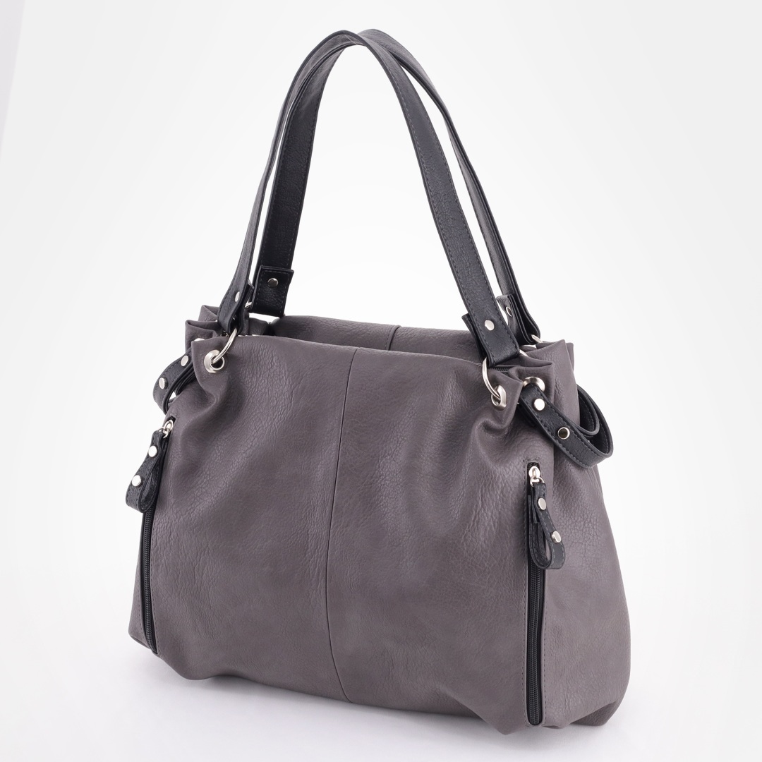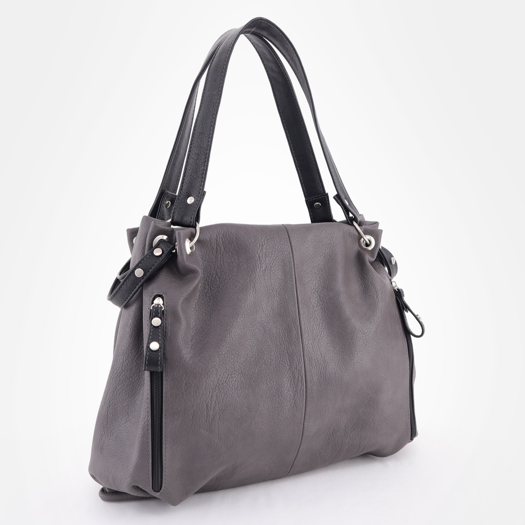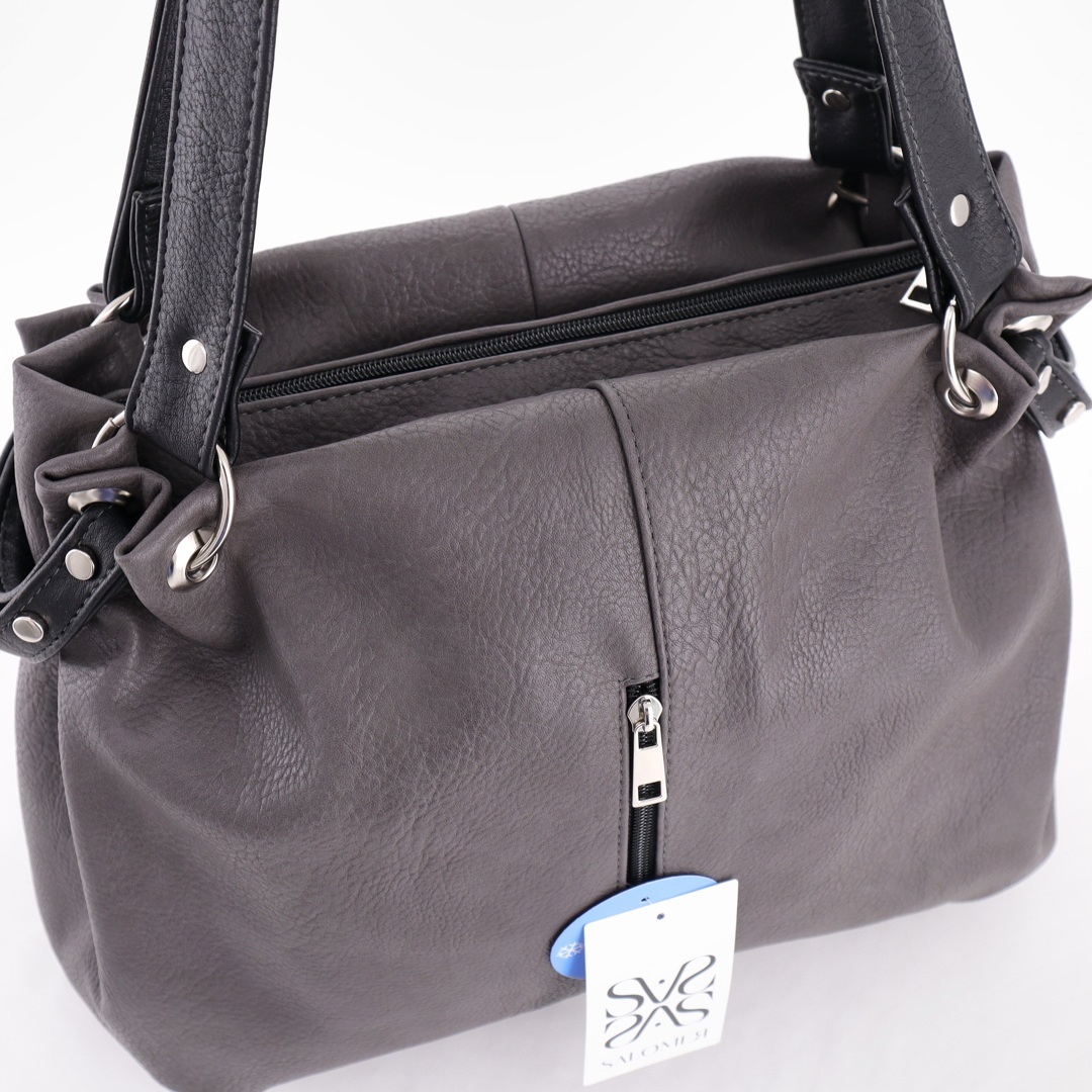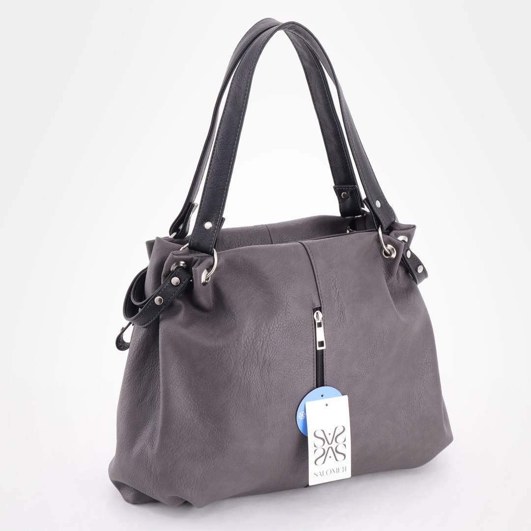 Бесплатные звонкиСумка для любого случая, отделана металлическими кнопками. Высота ручек 22 см. Спереди 2 вертикальных кармана на молниях. Сверху закрывается на молнию, внутри одно отделение + 2 кармана на молниях. Сзади вертикальный карман на молнии для мелочи.