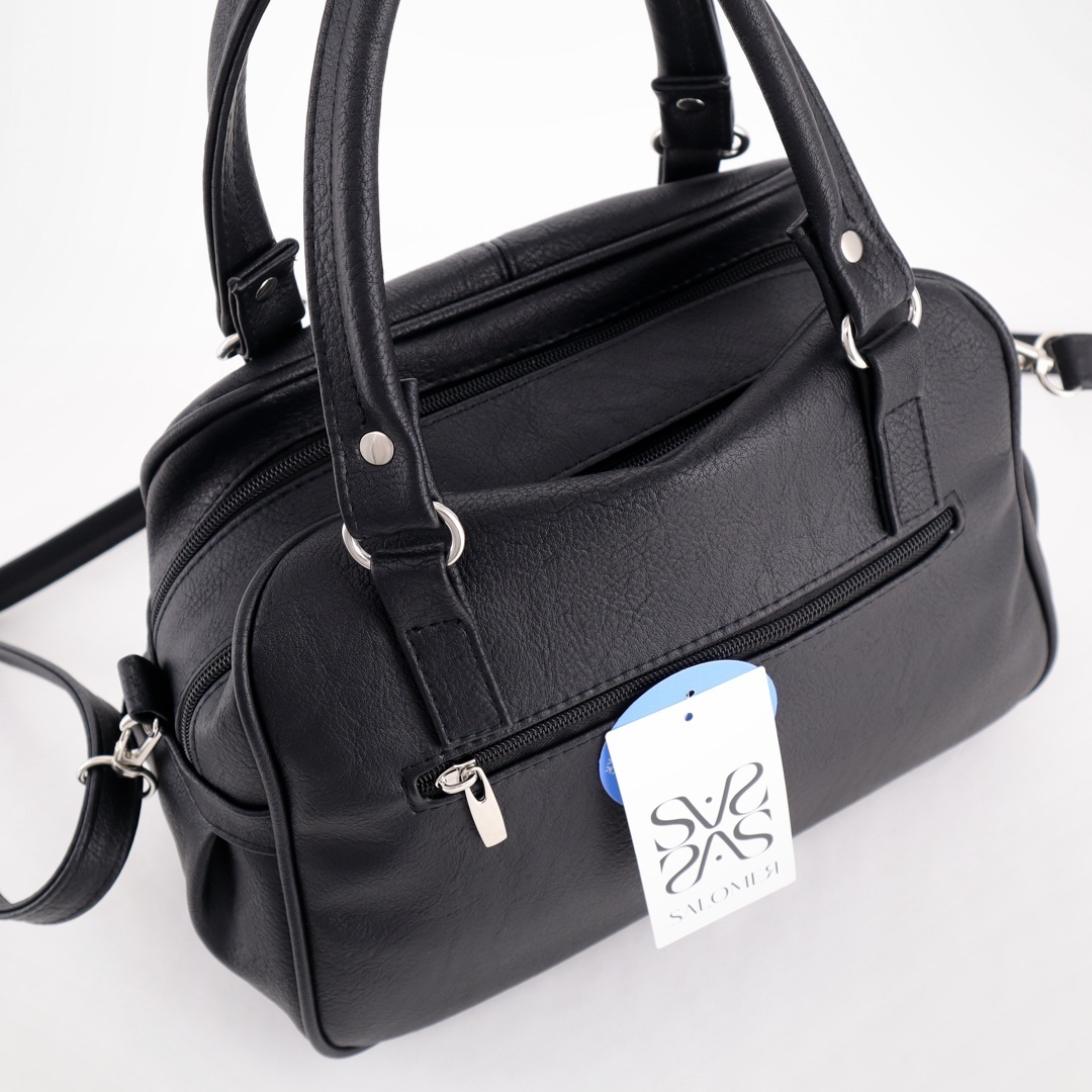 Бесплатные звонкиНебольшая, вместительная сумка со множеством карманов. Короткие ручки на кольцах. Сверху 2 отделения на молниях. Внутри карман на молнии. Сзади карман на молнии. Есть длинный ремень через плечо.